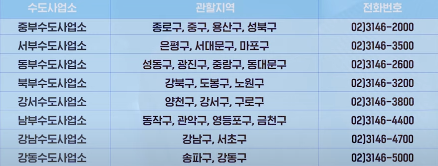 그래도 수도계량기 유리부가 깨지거나 부풀어 오르는 등 동파가 의심되거나 발생했을 시에는 상수도 민원상담챗봇 아리수톡이나 서울시 다산콜재단 02)120 또는, 관할 수도 사업소로 신고하면, 언제든지 바로 도움을 받을 수 있습니다. 추운 겨울에도 끄떡없는 수도계량기 동파사고 예방법 세 가지 채우기, 틀기, 녹이기로 모두 함께 편안한 겨울 보내요.