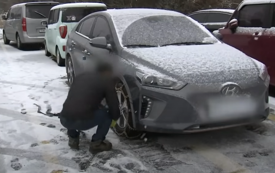 국내에서 버튼 하나만 누르면 자동으로 타이어에 체인이 설치되는 신기술이 개발이 되었습니다. . 겨울철 눈길이나 빙판길에서 안전하게 운전하려면 쇠사슬이나 플라스틱 직물 등으로 만든 스노우 체인이 필수입니다. 체인이 있으면 제동거리가 2미터 가까이 줄고 경사로와 곡선길에서도 안정적인 주행이 가능하다는 실험 결과도 있습니다. 그런데 비 좁은 타이어 공간 사이로 체인을 넣고 설치하는 일은 차량 정비사에게도 쉽지 않습니다. 각도나 방향 계산하셔가지고. 단단하게 조여야 되는데 그렇게 하시기도 힘들고 뭐 일반 차주분들이 하시기는 아무래도 좀 어렵습니다. 눈길을 벗어나자마자 체인을 바로 빼내야 한다는 점도 번거롭긴 마찬가지 입니다.