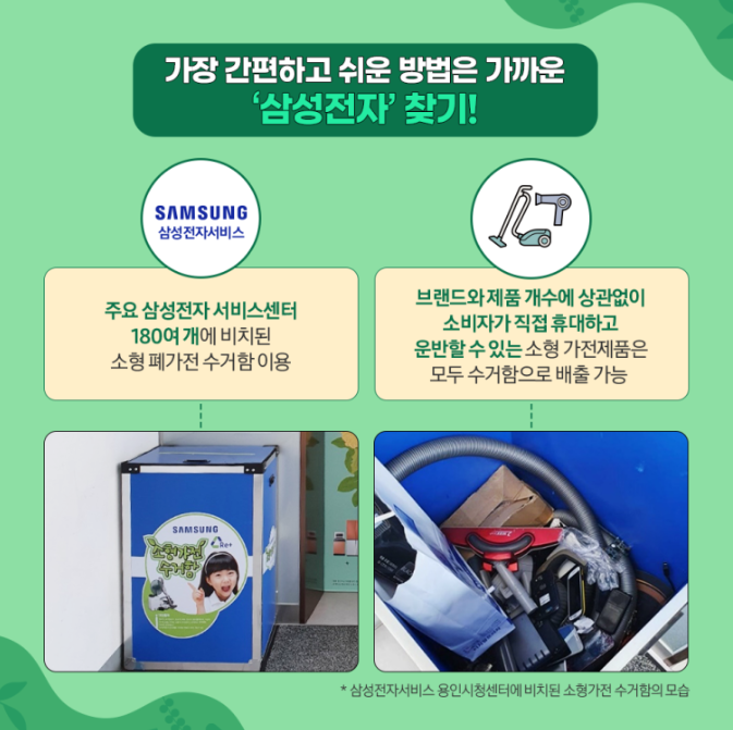 두번째는 소형가전들은 삼성전자 서비스센터에 갖다 주시면됩니다.