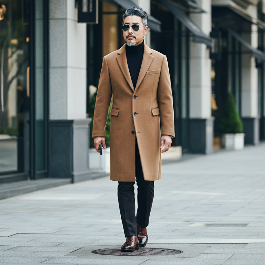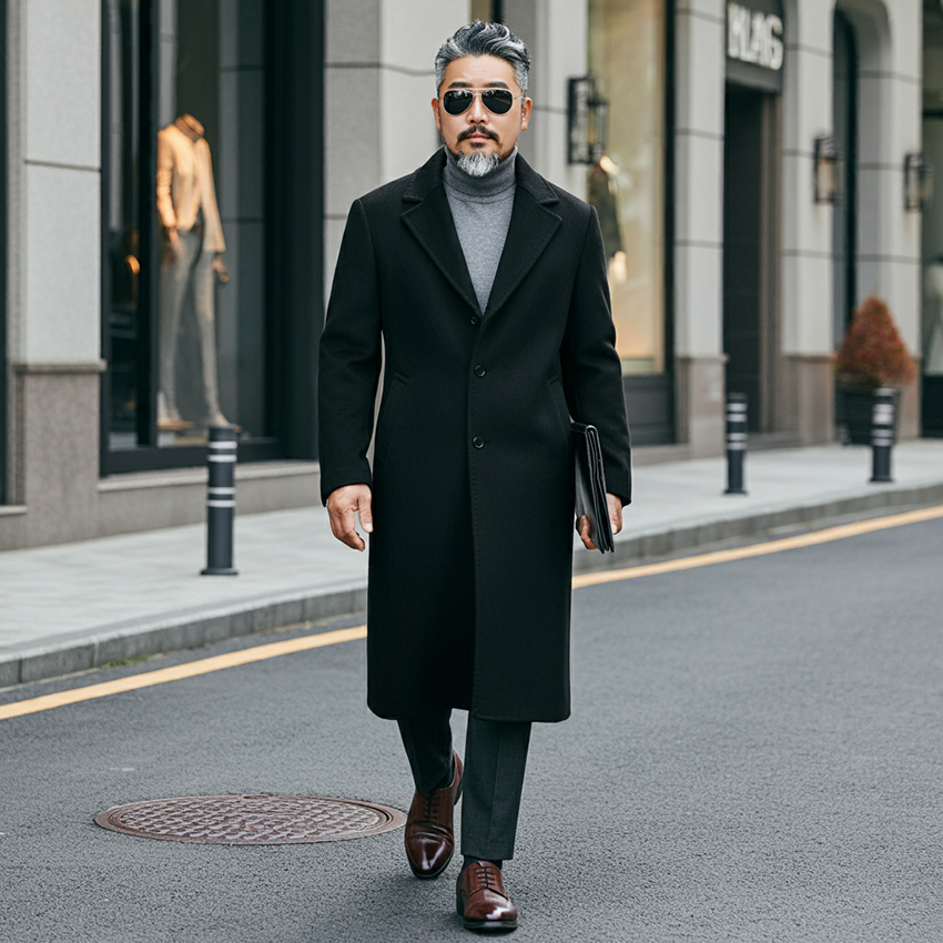 - 코트: 클래식한 트렌치코트나 더블 브레스트 코트는 중년 남성에게 세련된 이미지를 준다. 색상은 네이비, 그레이, 블랙처럼 기본 컬러를 선택하면 다양한 옷과 매치하기 쉽다.