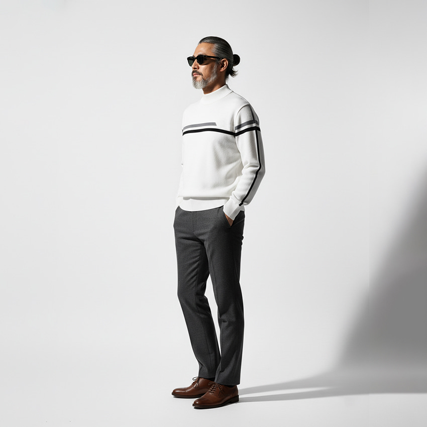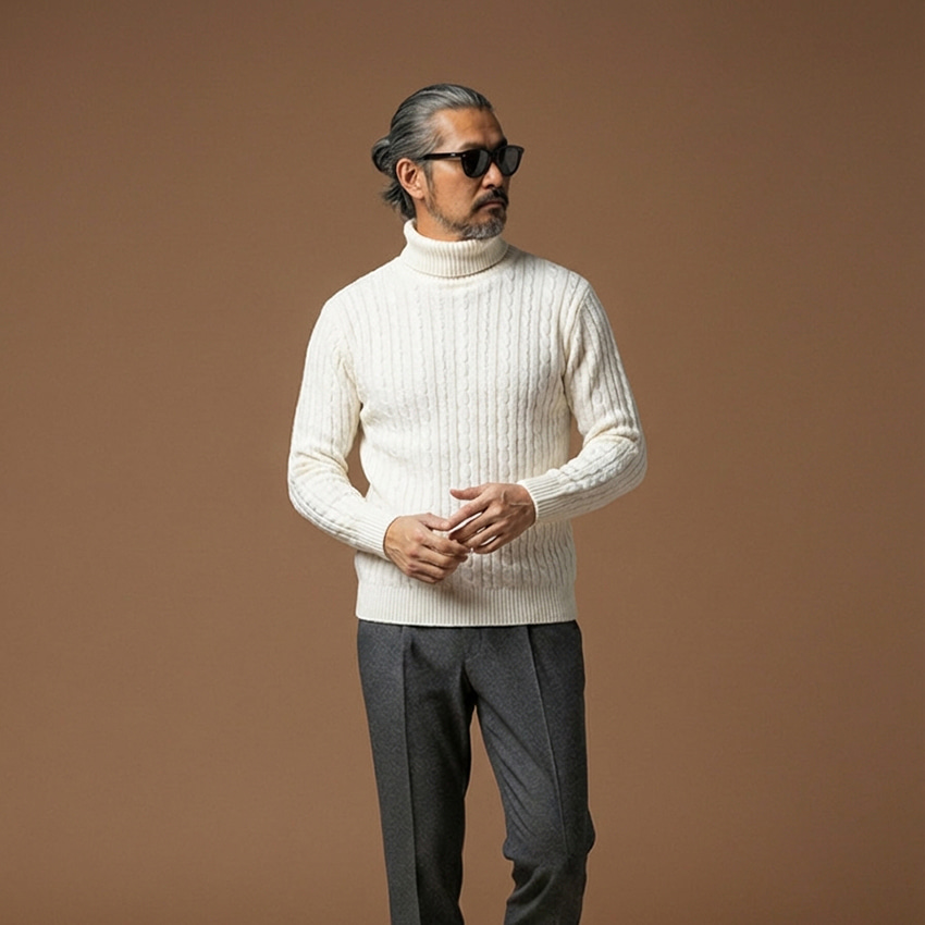 찬 바람이 옷깃을 여미게 하는 계절, 남자의 멋을 가장 세련되게 표현할 수 있는 아이템 중 하나가 바로 '터틀넥 니트'입니다. 단순한 방한용품을 넘어, 중년 남성의 지적인 분위기와 여유로운 품격을 드러내는 데 이만한 아이템이 또 있을까 싶습니다.